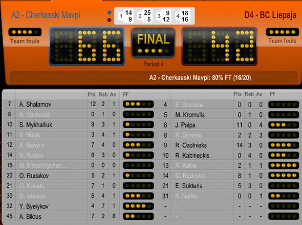Другий день стартового туру на престижному турнірі серед баскетболістів до 20-ти років запам’ятається дублерам «Черкаських Мавп» перемогою над «Лієпаєю». Латвійський клуб був обіграний колективом Максима Міхельсона з солідною перевагою – 66:42.