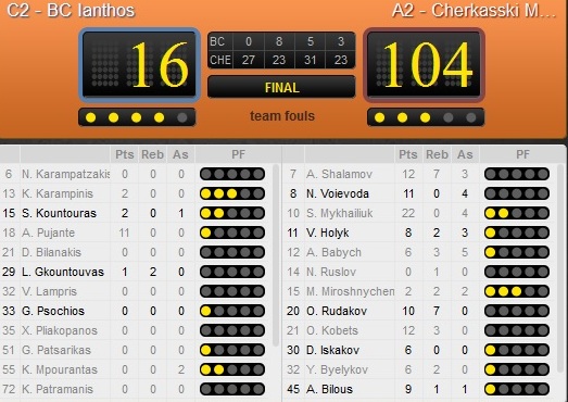 Доля матчу визначилася вже в першій чверті. Баскетболісти «Черкаських Мавп-2» у стартовому відрізку гри задали суперникові такий темп, від якого греки просто не встояли. 27 : 0 після першої чверті, інтрига у цей матч навіть не заходила. З кожним наступним періодом підопічні Максима Міхельсона збільшували свою перевагу в геометричній прогресії.
