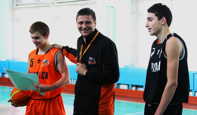 Тренувальний процес, як і годиться, був побудований тренером. Ворона швидко вибрав тактику майстер-класу і розділив школярів на дві команди. Причому функції капітанів у них виконували чемпіони України у своїй віковій групі. Таким чином можна було побачити не лише протистояння школярів, а й очну дуель представників нашого клубу. В результаті, найемоційнішим елементом баскетбольної зустрічі стали естафети. Вже після них команди зіграли у баскетбол. Ткаченко кілька разів виконав слем-данк і заслужено зібрав оплески присутніх.