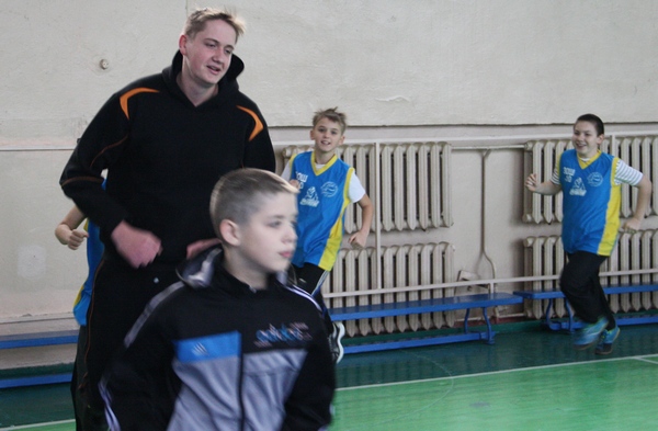 розпочали роботу з дітьми. Баскетболісти запропонували школярам розминку, яку