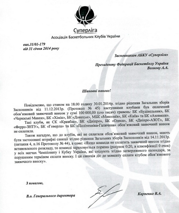 Наполягаємо дати відповідь АБКУ «Суперліга» терміново.