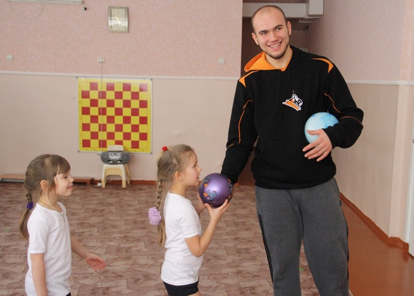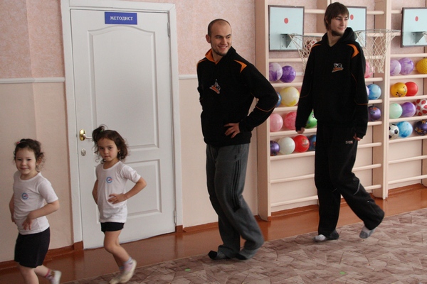 перед дітьми, а відразу взяв ініціативу до своїх рук. Спочатку баскетболісти провели з дітьми тривалу розминку. В ігровій формі