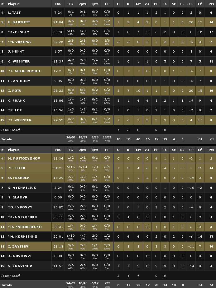 Нова Зеландія - Україна 73:61 (18:19, 18:11, 17:15, 20:16)