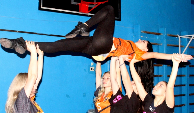 Наша група підтримки не лише показала, як правильно виконувати деякі танцювальні елементи, а й навчила виконувати деякі своїх учениць. Мова йде про так звану підстраховку партнера, якого підіймають на висоту двох метрів. Виконати таку, на перший погляд, небезпечну вправу дівчатам здавалося не лише складно, а й небезпечно. Але під пильним наглядом досвідчених тренерів у дівчат все вийшло.