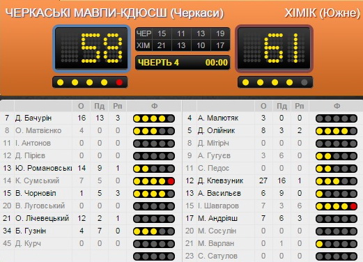 Найрезультативнішим гравцем нашої команди став Денис Бачурін (16 очок, 13 підбирань) та Юрій Романовський (14 очок, 9 підбирань). Таким чином, завтра «Черкаські Мавпи-00» поборються за бронзові нагороди чемпіонату України.