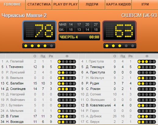 У протистоянні молодості проти досвіду перемога залишилася за черкаським аргументом. Досвідчені Ковалевський та Дубнюк намагалися тягнути рівненську команду у цій грі і у них це непогано виходило в першій половині. Варто відзначити Дубнюка, який у першій половині допоміг своїй команді виграти підбір. За підсумками її, черкасці зібрали 8 підбирань на чужому щиті, а суперник - 16. В результаті, це допомогло рівнянам на рівних триматися з нашою командою – 31:31 - після першої половини.