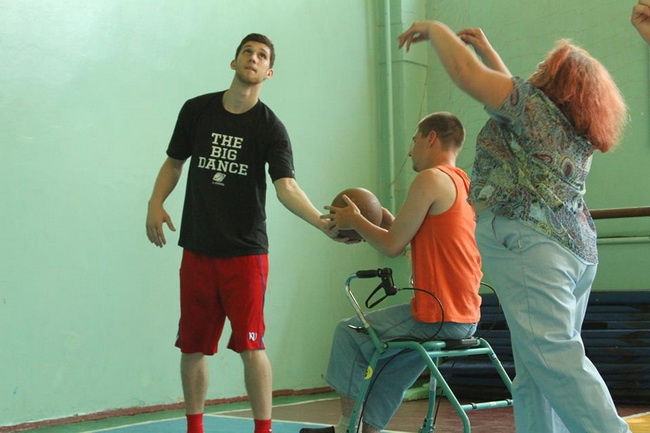 Цього разу до них завітали справжні зірки, а це: центровий черкасців – Станіслав Завадський та вихованець клубу і гравець NCAA - Святослав Михайлюк. Все розпочалося з розминки, яку діти з особливими потребами майже вивчити напам'ять.