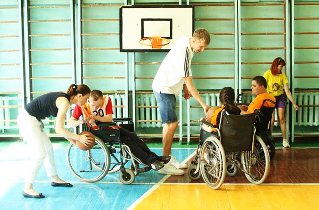 Потому учасники майстер-класу були розбиті на дві групи, де розпочали індивідуальну роботу. Святослав Михайлюк відпрацьовував з хлопцями на звичне кільце, а Станіслав Завадський взявся до роботи біля спеціального кошика, в який могли б влучати діти на колясках. Нашим вболівальникам більше до снаги була командна робота. Протягом заняття вони вміло відпрацювали передачі, Завадському ж випало зробити чимало атакувальних дій.