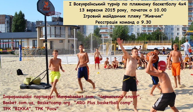 Цієї неділі черкаський пляжний комплекс «Живчик Арена» прийме перший Всеукраїнський турнір з пляжного баскетболу. Турнір відбудеться у трьох вікових групах. Нагороди розігруватимуться серед дорослих, а також у двох юнацьких категоріях (юнаки 2002-2003 рр.н. та юнаки 2004-2005 рр.н.).