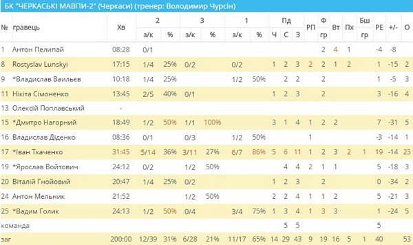 В обох матчах найрезультативнішим гравцем «Черкаських Мавп-2» став Іван Ткаченко. Форвард набирав по 25 і