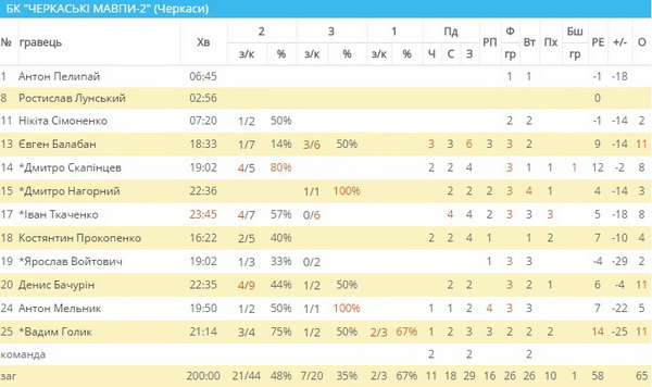 19 підбирань. У підсумку, перемогою черкаська команда забронювала собі місце в