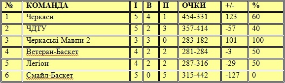 - 68-62. Ця перемога дозволила «Черкасам» зміцнити свої лідерські позиції. А на