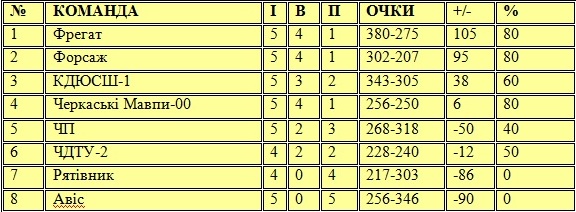 перше місце піднявся «Фрегат». У п’ятому турі команда обіграла прямого