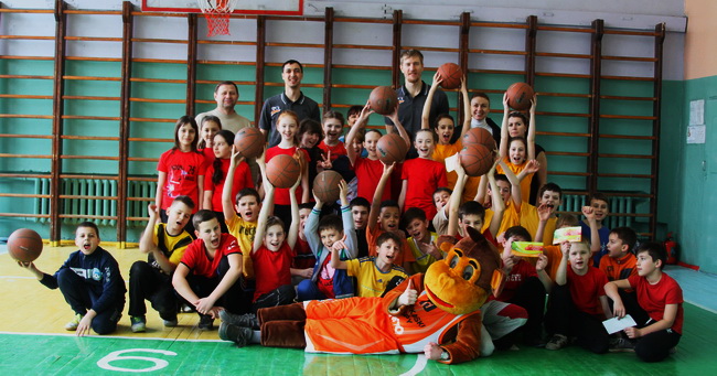 Ознайомити з цією програмою та з баскетболом взагалі у дев’яту гімназію прибули Завадський та Антонець. Особливий емоційний вибух відбувся, коли схвильована дітвора побачила в компанії з баскетболістами талісман клубу. «Горинич» дуже швидко пристосувався до веселої шкільної атмосфери та заходився тішити публіку своїми емоціями.