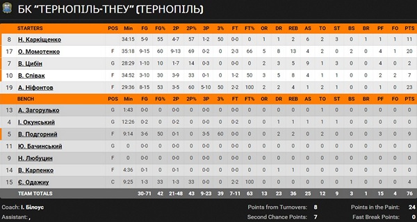 «Тернопіль-ТНЕУ» - «Черкаські Мавпи-2» 76 : 88 (24 : 17, 14 : 24, 23 : 19, 15 : 28)