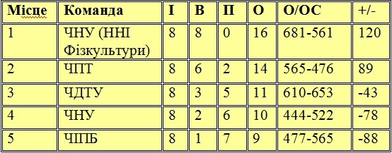 баскетболісти ННІ Фізичної культури (ЧНУ) здобули всі 8 перемог і фінішували у