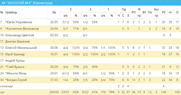 «Золотий Вік» 63 : 100 (12 : 18, 16 : 31, 26 : 21, 9 : 30)