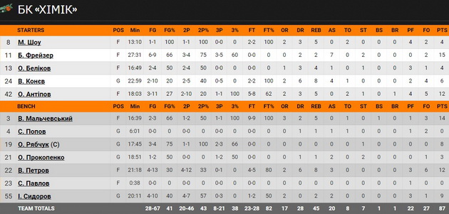 допомогою кидків з-за дуги. У свою чергу, «Хімік» поступово збільшував відрив.