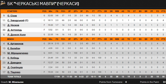 Мавпи» 70:50 (26:18, 18:5, 17:16, 9:11)