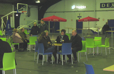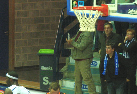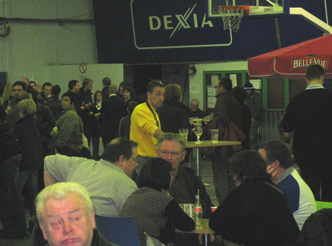 О резиденции клуба: такой себе зальчик на 5 000 мест, с двумя тренировочными полями, размером с наш «Строитель», с количеством стояче – сидячее - закапелочных и ВИП ресторанов-кафе-баров-хот-договских и т.п. С этим у них легко и просто: 400 видов бельгийского пива надо же где-то пробовать!!! Но когда – это понятно: народ собирается за час до игры, разминается – по бокалчику –другому. Перерывчики тоже зря не теряют: ещё по парочке. При этом удивительно: практически нет пьяных. Точнее: пьяных по- нашемы: « А – ну давай поговорим!» и т.п. Автор этих строк трижды успел в перерывах рёва зала одиноко прокричать милое сердцу: „Черкаські Мавпи” – и никто из этой малотрезвой, но очень приятной публики, не призвал нарушителя идилии к ответу. Следует отметить ( в святи с заявлениями о грядущем 100- кратном повышении штрафов за управление авто в нетрезвом состоянии) что в Бельгии за выпитые пару бокальчиков пива „перед стартом” никого не штрафуют. Думаю, после игры с „Мавпами” вообще никого не останавливали : НУ ЛЮБЯТ У НИХ БАСКЕТБОЛ!!! В городе с населением в 98 000 жителей ( включая пенсионеров и новорождённых), зал на 5 000 мест был забит до отказа уже за пол- часа игры. При этом на галерке уютно разместились любители „баскетбола с гарниром”: штук п’ять – шесть ВИП – ресторанов для желающих и могущих себе позволить пить пиво , а скорее всего французское шампанское ( до Парижа- 240 км) – не выходя из зала.