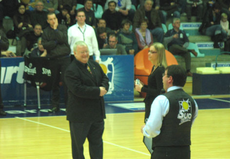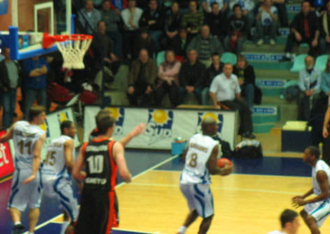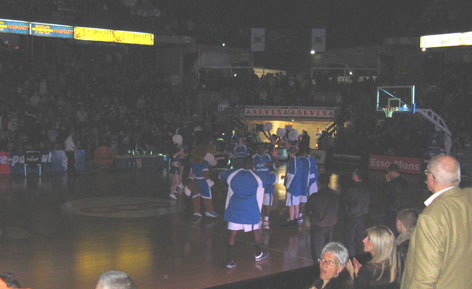 Кстати: да – здесь проходил и баскетбол. Точнее – БАСКЕТБОЛ!!! Началось всё с того, что в зале потушили свет, врубили зажигательную музику, под которую ( после скромного представления гостей) ВЕЛИЧАЛИ – свою команду! Слово дали ... Нет не главе администрации ( даже не знаю – есть и она у них) , а маленькому шестилетнему мальчику...который боготворит одного из игроков команды, и попросил разрешения перед игрой вручить игроку собственноручно написанное письмо... ( Как –то дисонирует с появившимся у нас Гоу Хоум ( транскрипция Верна) .