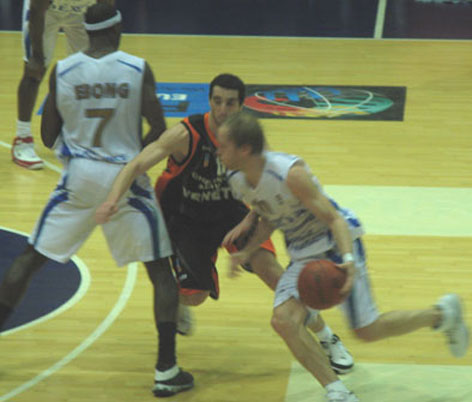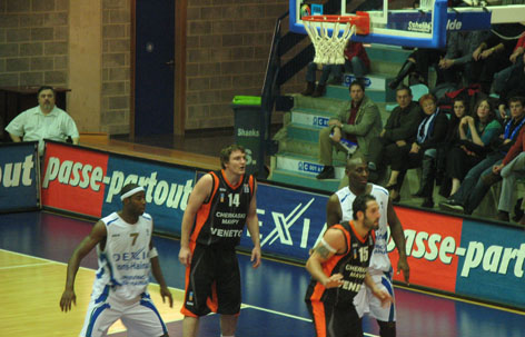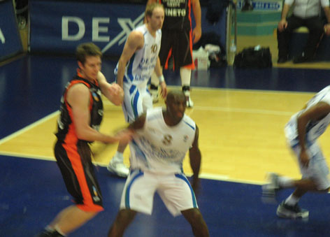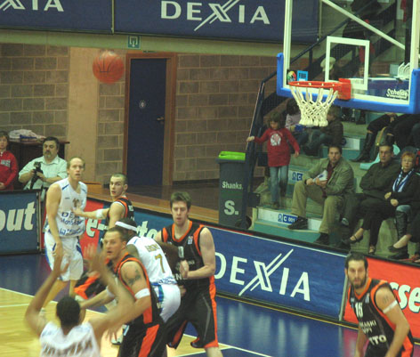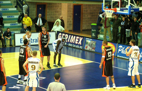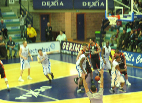 Игра ( после всего комплекса европейской помпезности что ей предшествовало) началась ... с явного нашего преимущества. Этого не ожидал никто. Даже наши. Радовал Ярутис. Был точен Андрюкайтис. Боролся , как ТИГР , Фади. 11:10, 13:11.( в нашу пользу) Но, суперник, в составе которого было 6( шесть!!!) классных американцев, два англичанина и три бельгийцы оговтався, а наши , по – видимому, вдруг вспомнили, что они в гостях, и на перерыв ушли с „-11”. Во второй четверти довели разрыв до „-9”. Не более.
