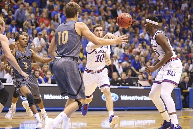 Захисник молодіжної збірної Святослав Михайлюк допоміг команді Університету Канзасу перемогти в передсезонному поєдинку Емпоріа Стейт – 104:62.