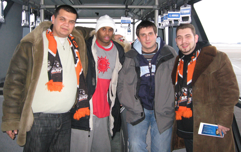 Фанатiв, тим часом, зусрiли їх пермськi коллеги. Вони запросили наших хлопцiв у свiй фанатський клуб, де подарували один одному сувенiри та клубну атрибутику. Випили пару склянок горiлки за баскетбол, довкола якого об’эднуються все бiльше i бiльше людей. На нiч українських вболiвальникiв пермськi фани розмiстили на своїх квартирах.
