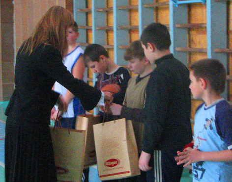 Завітали до дітей і представники фірми "Ходак", а саме заступник генерального директора Олександр Новицький та керівник відділу маркетингу Ірина Гетьман, які вручили дітям подарунки з фірмовою продукцією.