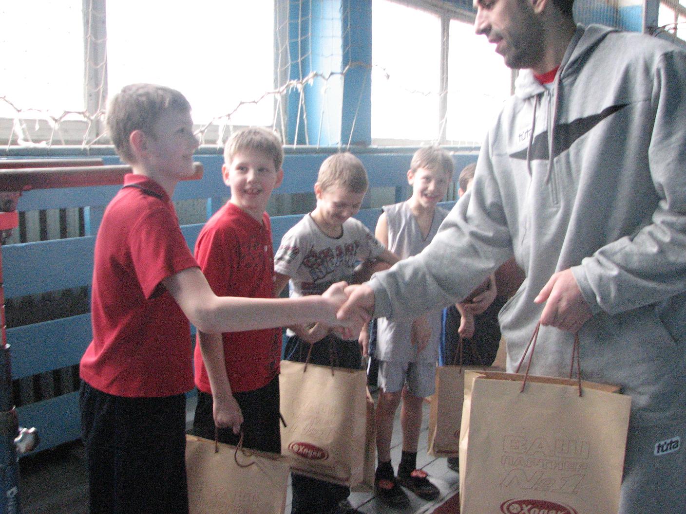 Мірослав привітав юних баскетболістів (1996, 1997 і 1998 року нарождення) та вручив їм подарунки від спонсора черкаського баскетболу фірми "Ходак".