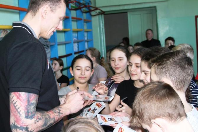 Гравці «Черкаських Мавп» Нікіта Руслов та Дмитро Липовцев провели майстер-клас для учнів черкаської загальноосвітньої школи №7.