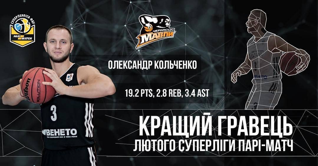 Тож не випадково, що вперше у цьому сезоні представник “Черкаських Мавп” сьогодні був визнаний кращим гравцем місяця у Суперлізі Парі-Матч. Цілком заслужено це звання отримав Олександр Кольченко. Протягом лютого капітан “Черкаських Мавп” видав низку сильних матчів і здобував у середньому за гру 19,2 очки. При цьому допоміг “Черкаським Мавпам” виграти усі 5 матчів лютого.