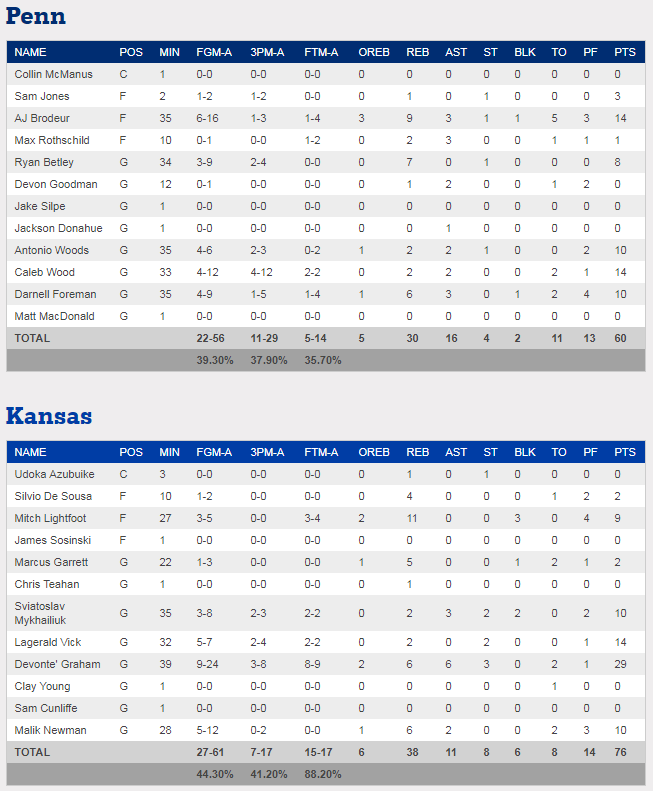 "Канзас Джейхоукс" вихованця "Черкаських Мавп" Святослава Михайлюка переміг "Пенн Квокерс" у матчі 1/32 фіналу "березневого шаленства" NCAA – 76:60.