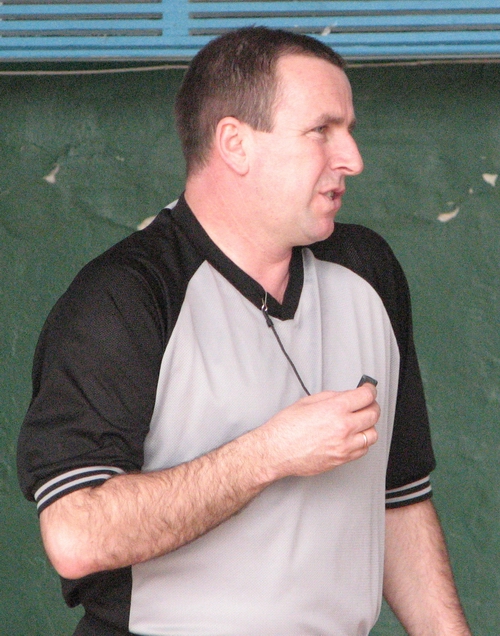 Красномовна міміка Олександра Нагорного, одного з небагатьох чоловіків присутніх на матчі. Навіть досвідчений суддя не все розуміє у жіночому баскетболі!