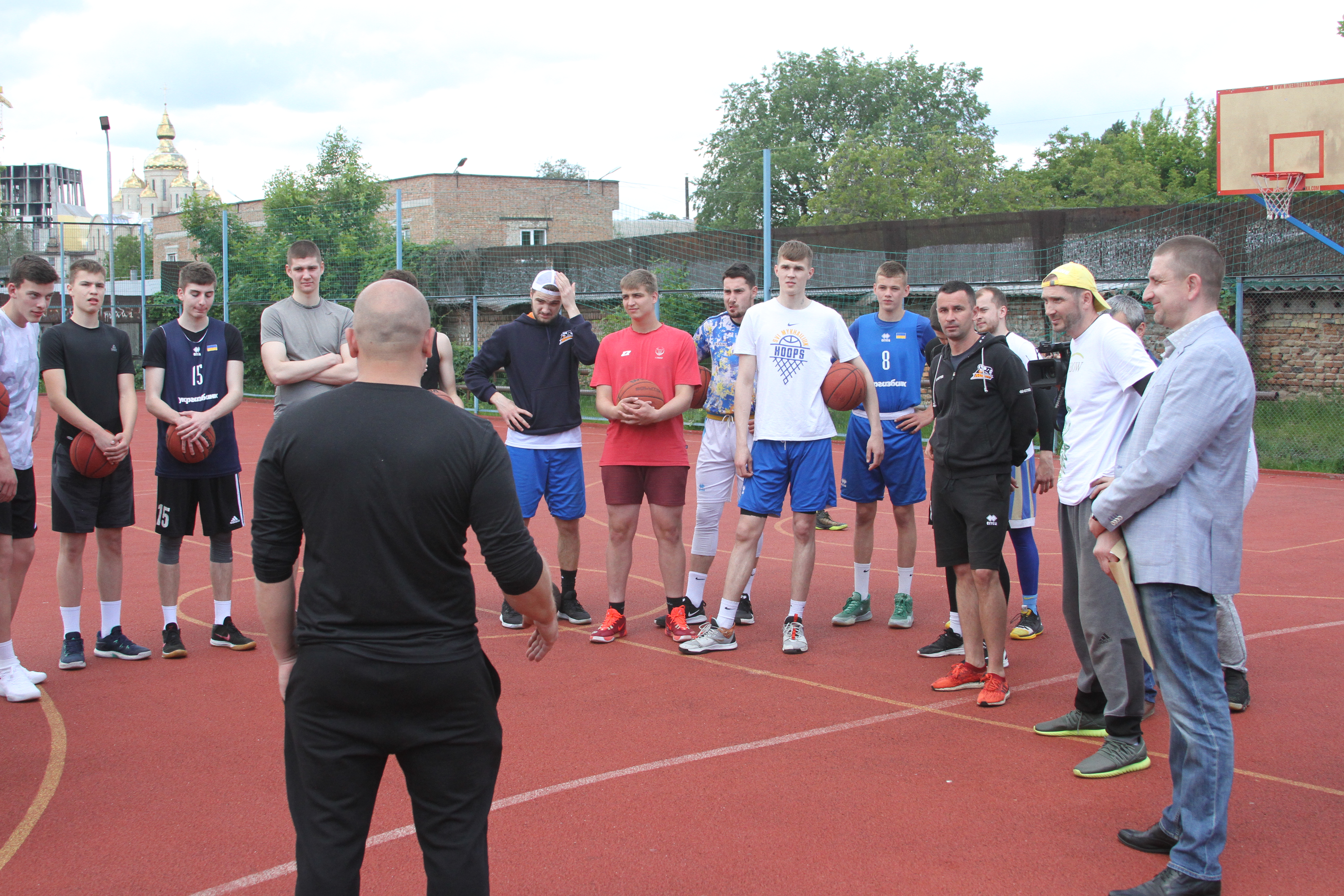 Після розминки гравці чимало попрацювали над координацією. У другій частині тренування настав час зіграти, щоправда дещо у видозмінену форму баскетболу. Перший матч пройшов з регбійним м’ячем. Втягуюча гра з акцентами на координацію рухів пройшла доволі емоційно. Тренувальний табір було розділено на три команди. Найкраще до нового формату пристосувалась команда де капітаном був Іван Ткаченко. Вихованець нашого клубу традиційно ефектно колотив згори, попри зміну м’яча.