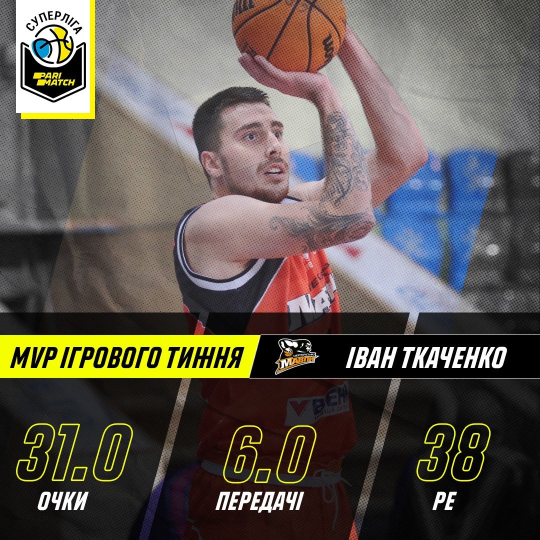 Іван Ткаченко - MVP тижня Суперліги Паріматч, Скапінцев у збірній!