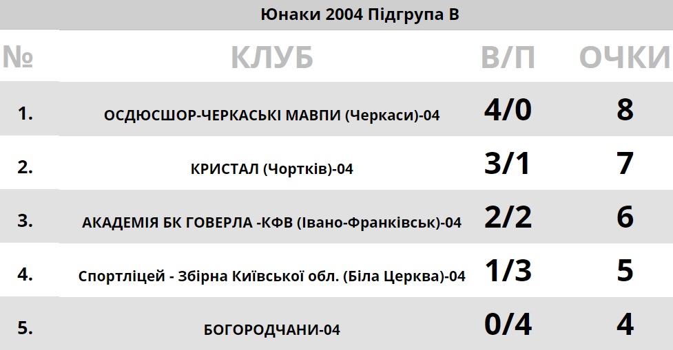 Після цього туру ОСДЮСШОР-Черкаські Мавпи-04 одноосібно очолили свою підгрупу ВЮБЛ!