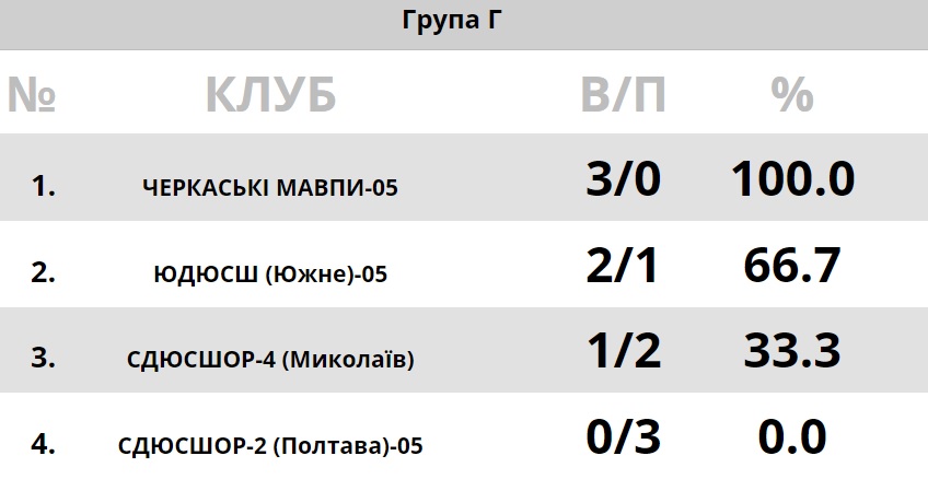 Боротьба вийшли лише у заключному матчі проти команди ЮДЮСШ. У грі з южненцями "Черкаські Мавпи-05" виграли першу чверть і тримали лідерство у кілька атак протягом усього матчу. Втім южненці завжди були близько в рахунку, однак у другій половині матчу черкасці не підпустили суперника і втримали перемогу - 65:58. Таким чином, з результатом 3:0 "Черкаські Мавпи-05" очолили групу Г ВЮБЛ.