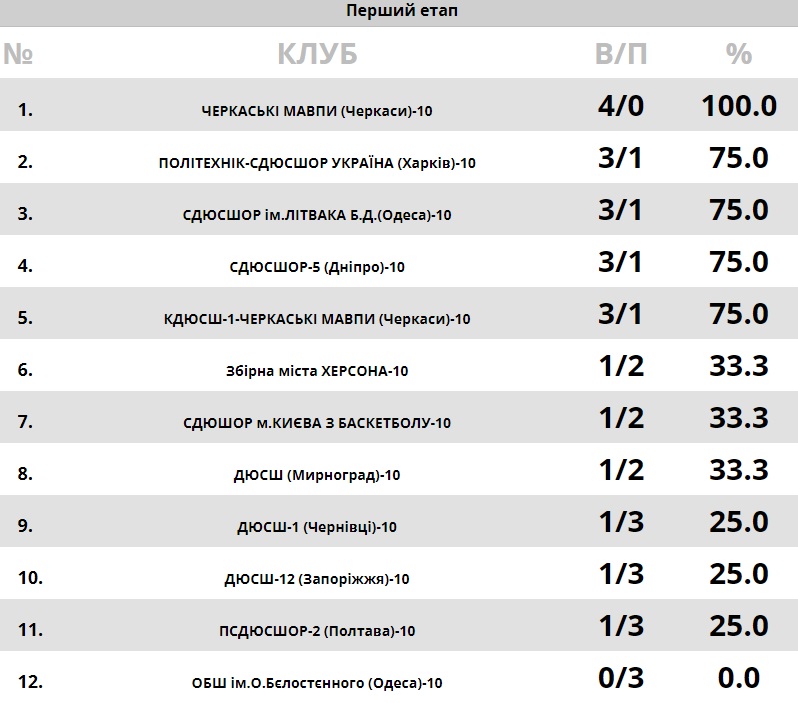 Підопічні Сергій Даценка також відіграли чотири гри та не зазнали жодної поразки. Усі чотири гри хлопці виграли з дуже великою перевагою в рахунках. Наприклад, в грі з Чернівцями, хлопці перемогли з перевагою у 44 очки, у грі з Херсоном перемогли на 28 очок, у грі з Запоріжжям перевага наших хлопців склала 41 очко.