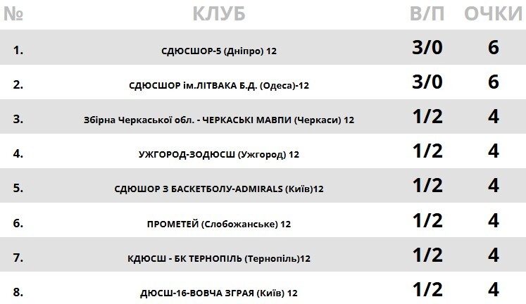 • «СДЮСШОР з баскетболу-Admirals» (Київ) – «Збірна Черкаської обл.-Черкаські Мавпи» – 66:64