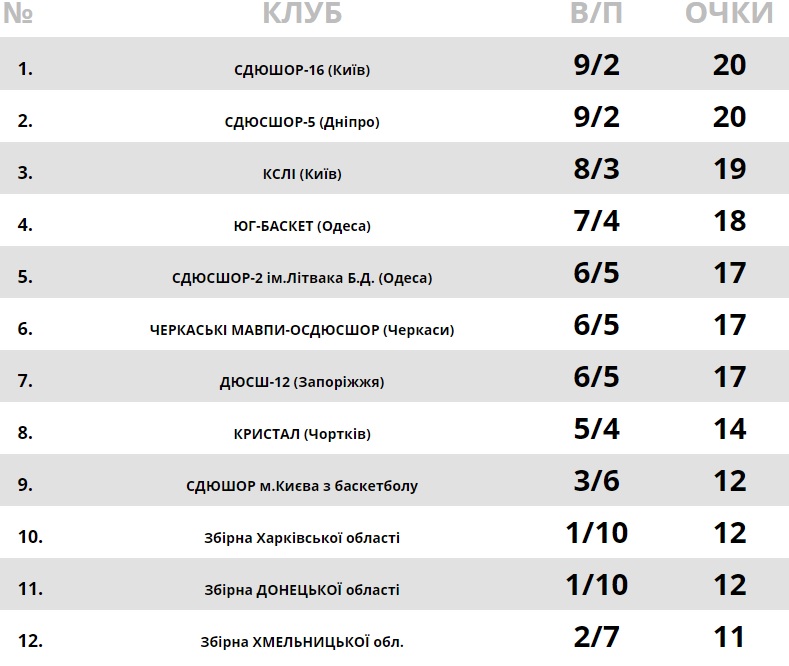 Після першого кола Черкаські Мавпи-ОСДЮСШОР посідають шосте місце у турнірній таблиці ВЮБЛ, однак у цій віковій категорії висока щільність команд, тому кілька перемог знову виведе черкасців у зону лідерів.